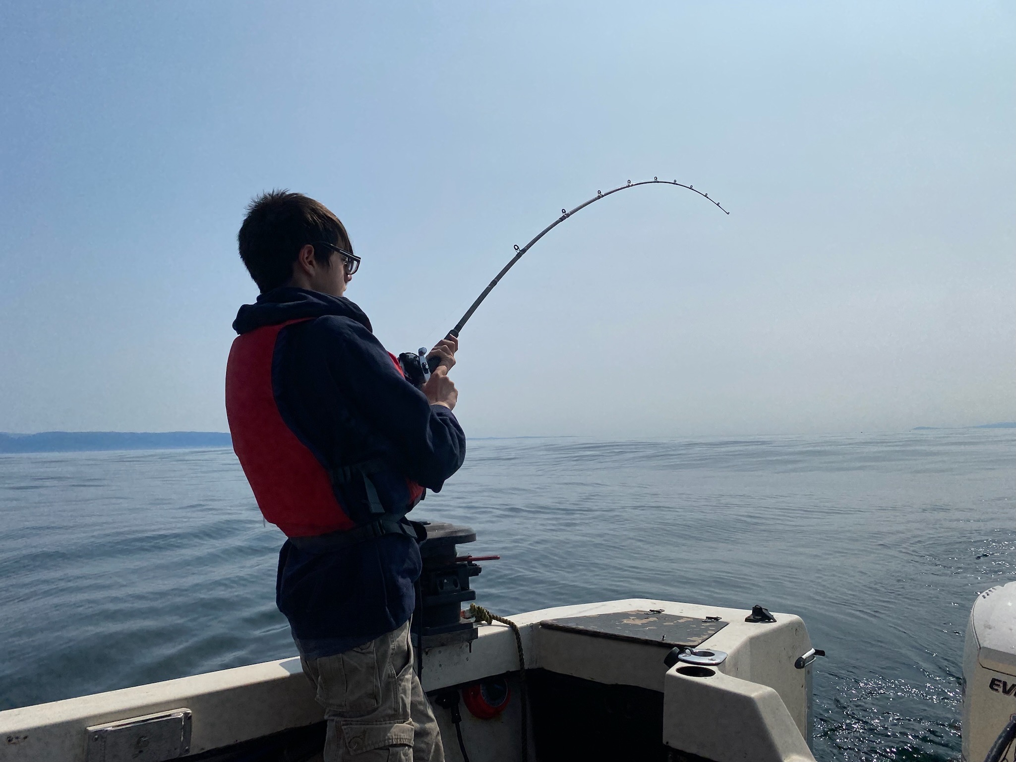 They also went out salmon fishing (one of many many fishing trips during this internship) to collect data for William’s project. All the interns brought fish home at some point during the internship and had a great time reeling them in!