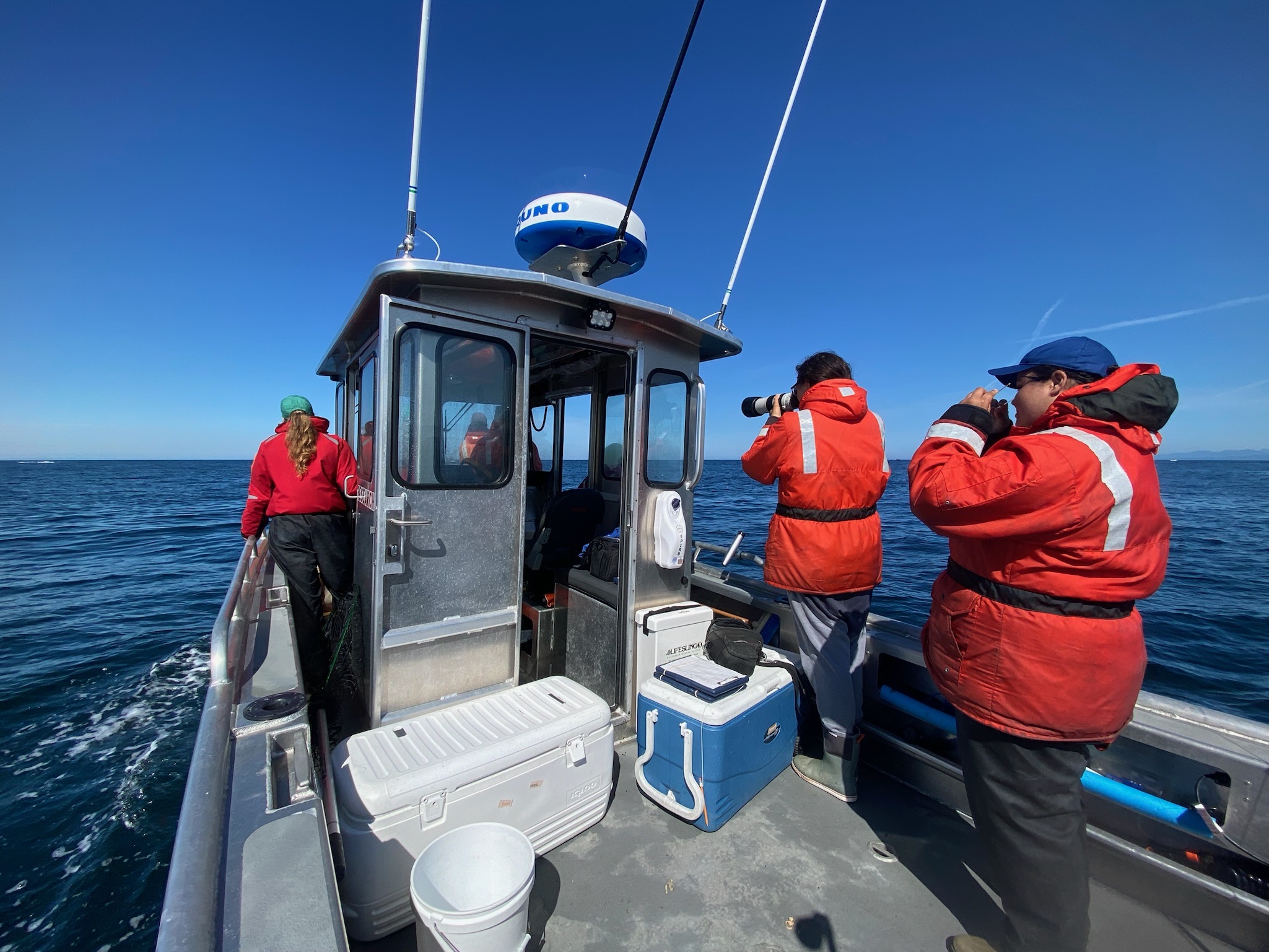 During week 5, the interns enjoyed their last few field days before hunkering down to work on their research projects. They spent a couple mornings trapping for invasive green crabs in Neah Bay, and some time on the boat with visiting gray whale researchers. They also spent a couple days in Seattle touring labs and visiting the Aquarium!