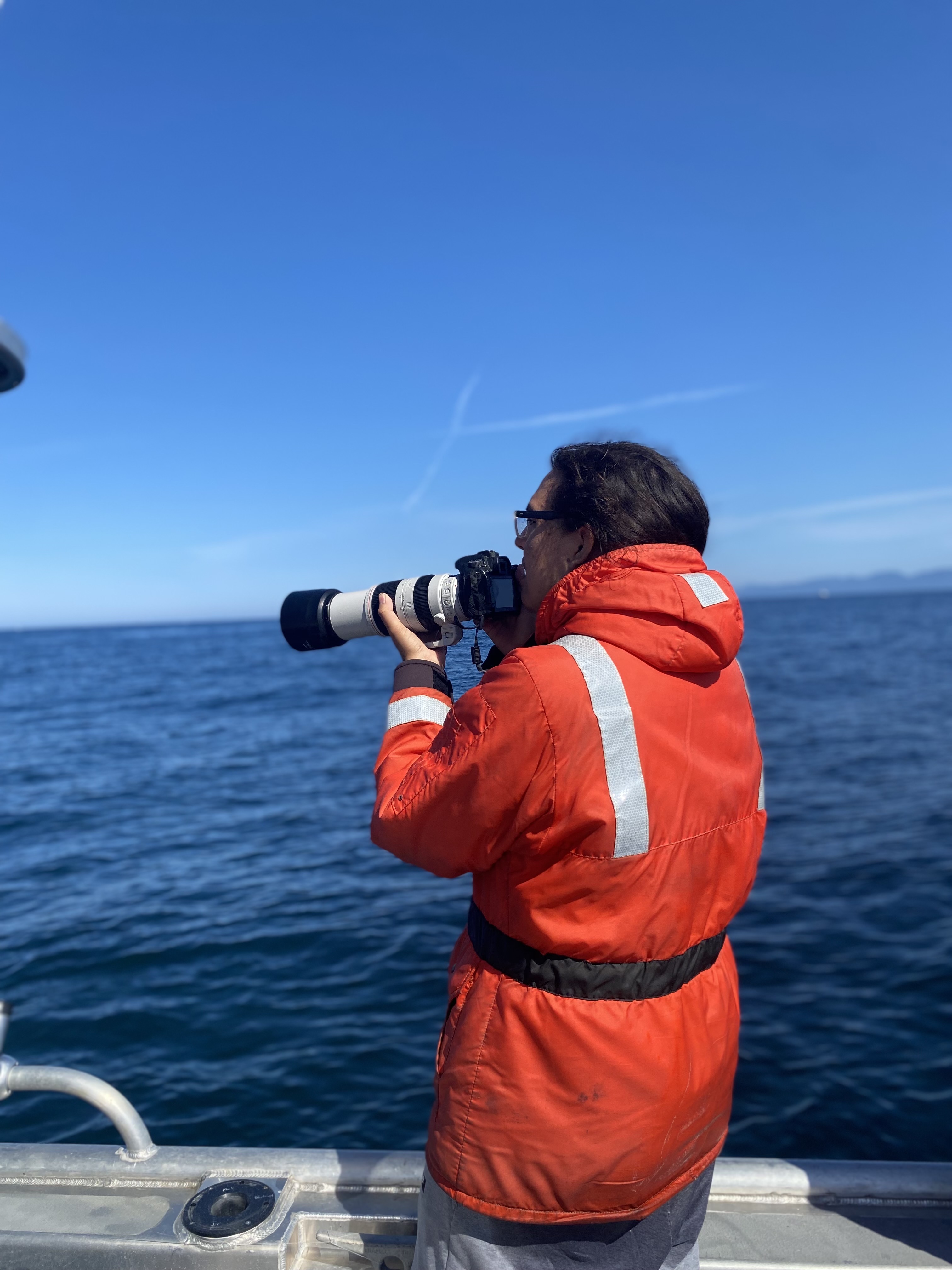 With the marine mammal program, the interns spent time out the Swiftsure bank surveying humpback whales. The whales were very active showing off their flukes and spouting close to the boat!